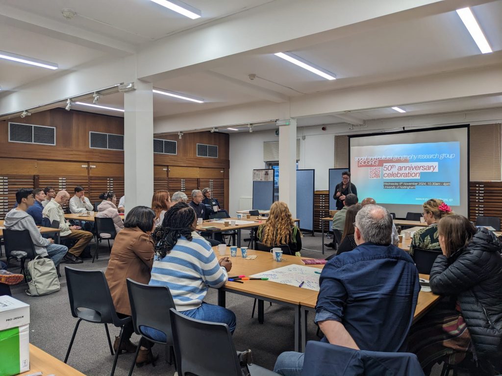 To mark the 50th anniversary of our research group, the committee organised a day-long event to celebrate this milestone and reflect on its evolution over five decades. We were kindly hosted by the University of Nottingham’s Department of Geography, to whom we would like to extend our since thanks. We would also like to express our deep gratitude to the wonderful participants and attendees who took the time to come along and celebrate with us, particularly those who contributed to our panel sessions throughout the day.